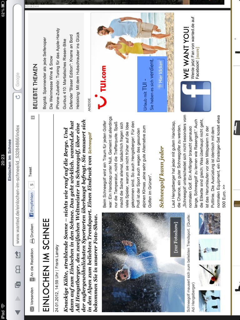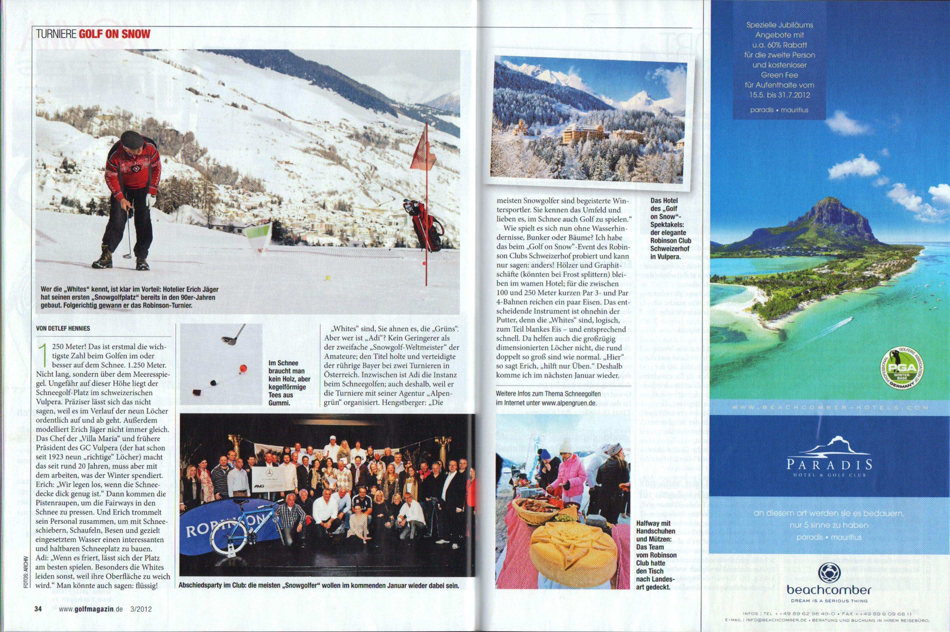 Pressebericht "Golf on Snow" Robinson Club Schweizerhof
